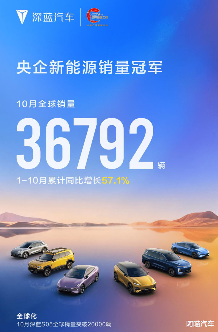 深蓝汽车10月全球销量为36,792台。其中,深蓝S05一款车型的全球销量便突破了20,000台,成为品牌的主力车型。深蓝品牌主打的年轻运动风格,再加上即将推出的深蓝L06,喵哥感觉深蓝汽车下个月销量能破4万。