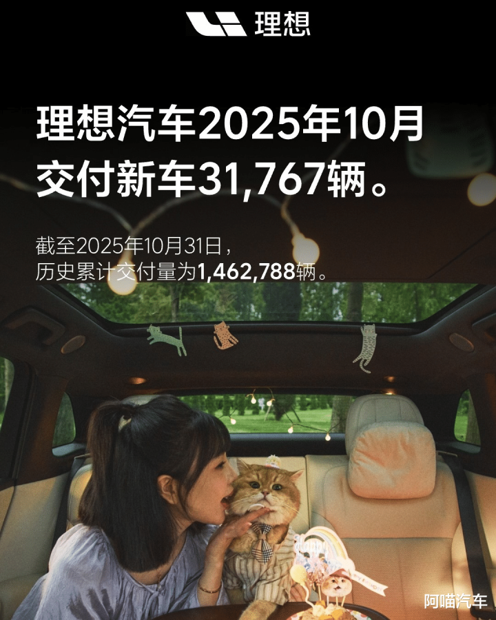 理想汽车10月交付31,767台,同比出现下滑。这主要源于其正处于向纯电车型转型的阶段,增程系列车型又被问界等车企冲击得很厉害,再加上一系列的负面消息,压力确实很大。不过,新推出的纯电车型理想i6目前订单还不错,就看能不能撑过这一波转型的阵痛期了。