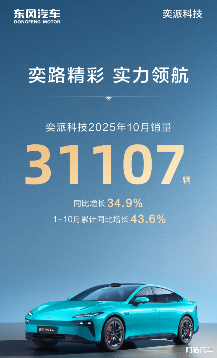 奕派科技10月销量为31,107台,同比增长34.9%,再次刷新了自身的月销量纪录,且已连续多月销量突破三万台。今年1月到10月,其累计销量同比增长超过四成。可能很多朋友不知道奕派科技是哪家车企,这是东风将旗下的奕派、纳米和风神三个品牌整合成立的,在当下市场如此内卷的情况下,整合品牌和资源也是一个不错的选择。