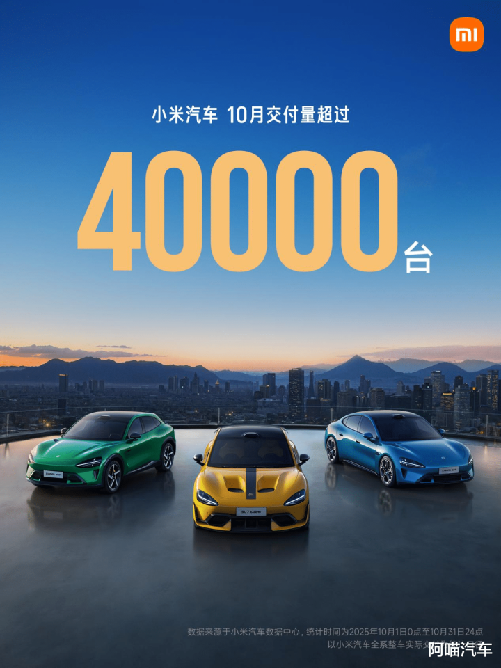 小米汽车10月交付量继续超过40,000台,与上月基本持平,连续两个月维持在这一水平。目前,小米汽车凭借SU7和YU7两款车型实现了这一交付规模。
